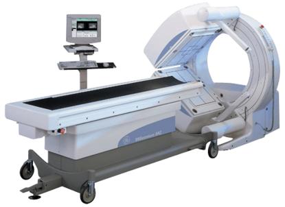 The GE Millennium MG gamma camera is a compact, dual digital CSE-detector, variable-angle gamma camera which allows you to perform a full range of nuclear medicine studies and provide complete clinical flexibility. The GE Millennium MG’s detectors may be oriented in either the 180° or 101° positions. This GE Millennium MG gamma camera features sculpted gantry arms to allow for closer proximity to the patient and a universal 3-axis table for improved patient handling and comfort.